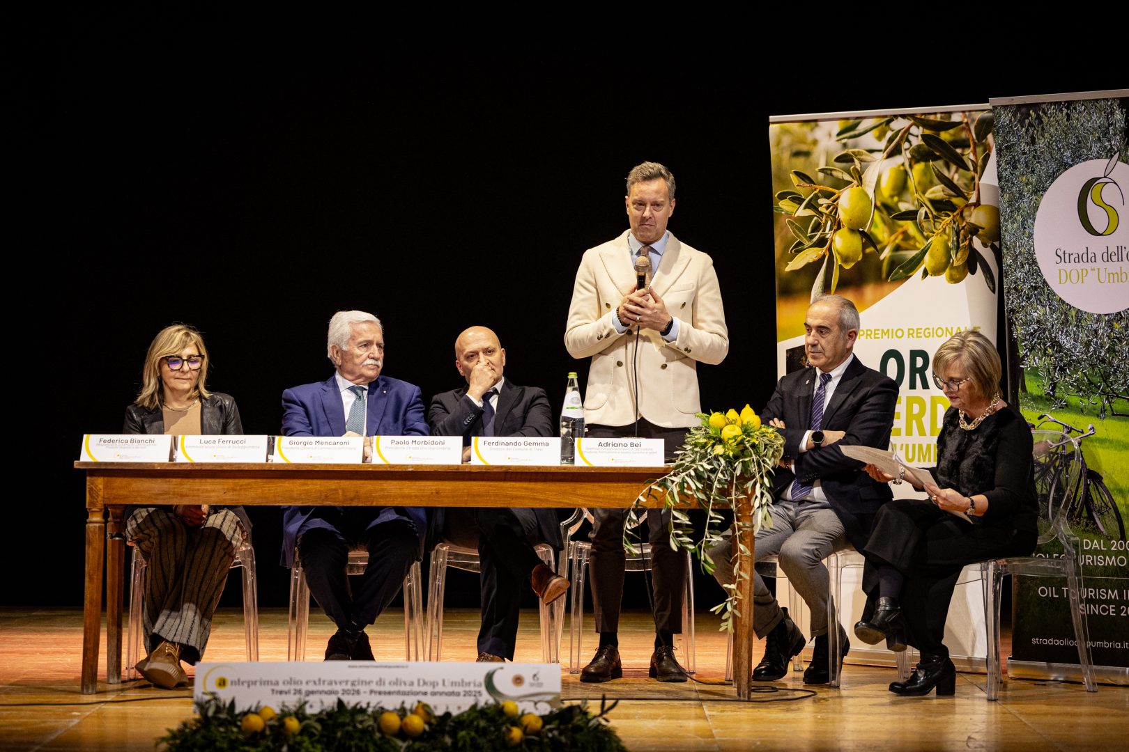 Oltre a Paolo Morbidoni, Presidente della Strada dell’Olio e.v.o. Dop Umbria, ad intervenire alla conferenza, moderata da Giuliana Piandoro, Vice Segretario della Camera di Commercio dell’Umbria sono stati: Ferdinando Gemma, Sindaco di Trevi e Giorgio Mencaroni, Presidente della Camera di Commercio dell’Umbria, che ha evidenziato come “l’Anteprima Olio Dop Umbria è un ideale collegamento con il Premio regionale “Oro Verde dell’Umbria” dando appuntamento ai partecipanti per marzo 2026, momento in cui il concorso regionale “Oro Verde dell’Umbria” metterà il suggello alla stagione produttiva 2025/2026 premiando i migliori oli della regione.