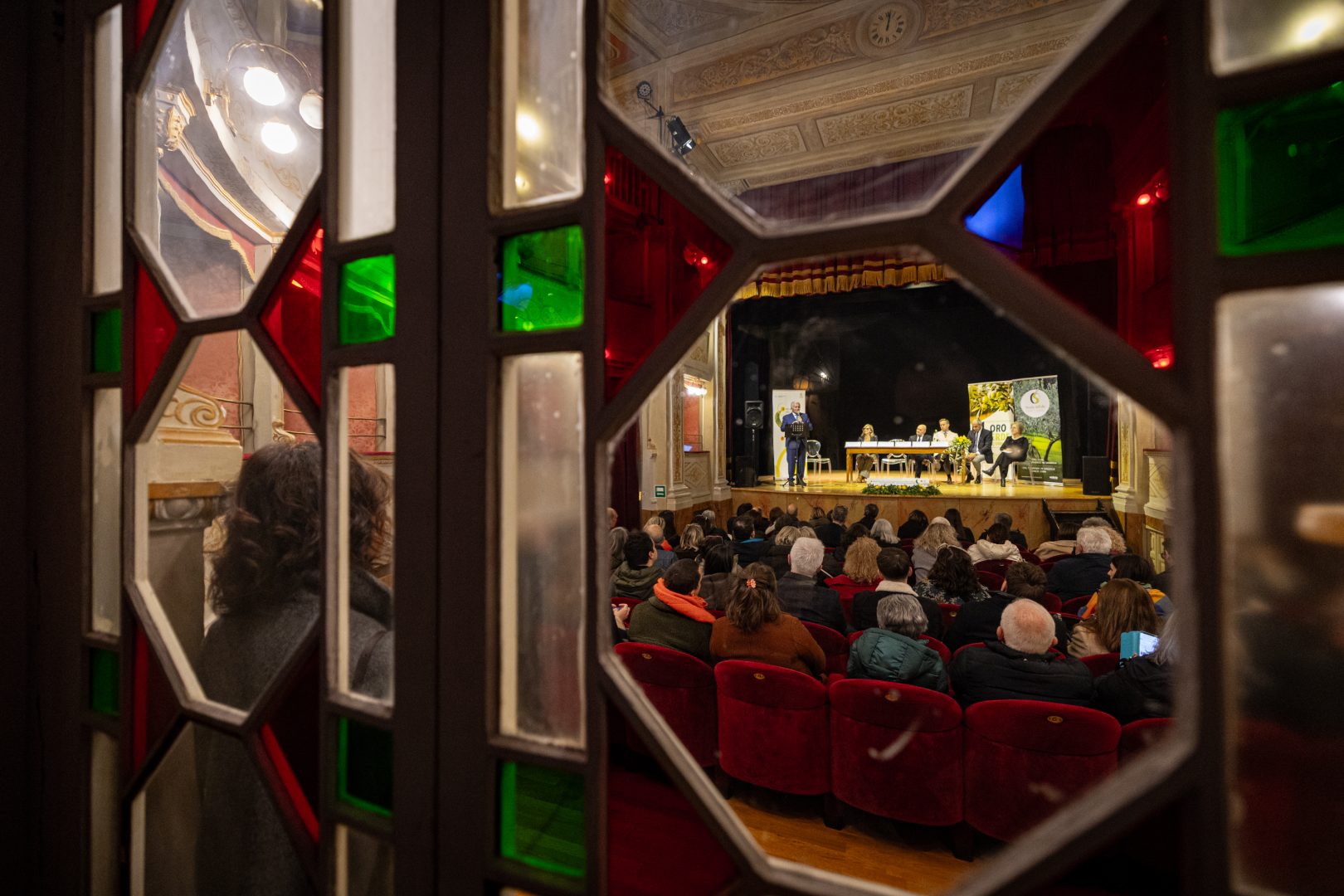 Il pomeriggio è poi proseguito con la conferenza di presentazione dell’Annata Olearia 2025, alla presenza delle maggiori Istituzioni umbre legate all’Olio e.v.o., svoltasi presso il Teatro Clitunno, elegante ambiente teatrale a due ordini di palchi con loggione, costruito nel 1875 e dotato di un sipario, datato 1877, opera del pittore perugino Domenico Bruschi, raffigurante l’imperatore Caligola che offre sacrifici al dio Clitunno.“L’anteprima Dop non solo è il racconto di una stagione produttiva, ma è anche l’affermazione dell’importanza della certificazione di origine e quindi del valore del territorio nel sostenere la reputazione di un prodotto”, così ha esordito Paolo Morbidoni, Presidente della Strada dell’Olio e.v.o. Dop Umbria. “C’è una asimmetria virtuosa che ci piace sottolineare e che è confermata dai numeri: l’olio umbro, malgrado rappresenti appena il 2% della produzione nazionale, ha una reputazione altissima e viene certificato in percentuali 5 volte maggiori rispetto alla media del paese. A conferma anche di una consapevolezza e di un lavoro importante che fanno i nostri frantoi e aziende. Ovviamente non basta essere bravi in campo e in frantoio. Bisogna lavorare per diffondere la cultura dell’olio di qualità e approcciare a nuovi mercati e sviluppare ulteriormente l’accoglienza. Su questi temi lavoriamo con l’Anteprima, coinvolgendo Buyers internazionali, giornalisti di settore e ristoratori.”