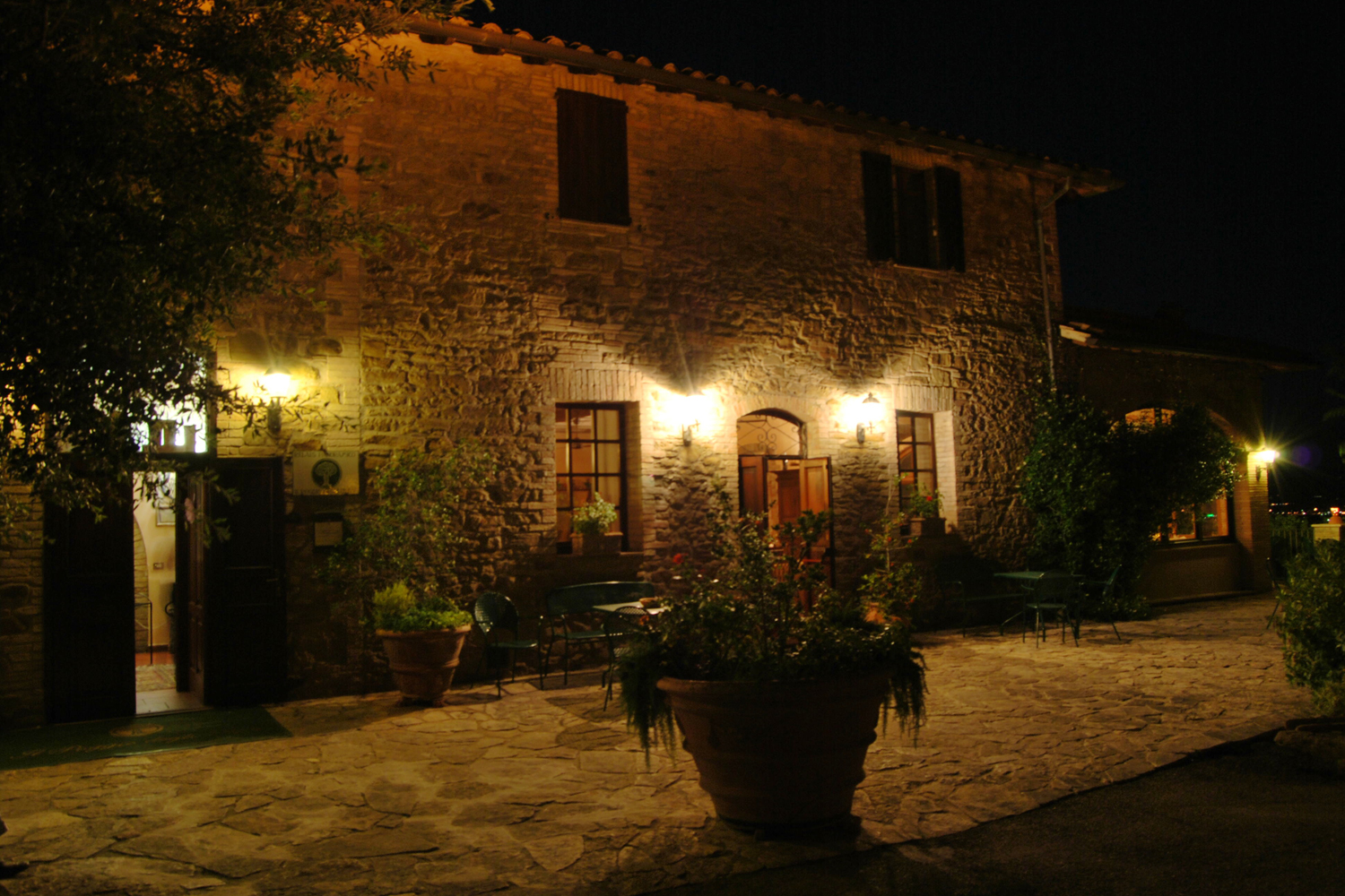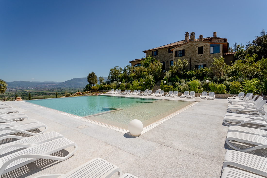In the area of the Martani hills, near the medieval village of Bettona, the Relais Poggio degli Olivi stands on the top of a hill. The old 17th century farmhouse, completely renovated, is the heart of the farmhouse. The relais, awarded with “5 spighe”, enjoys a privileged position, overlooking the whole valley and offering unforgettable views.